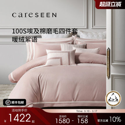 康尔馨100支埃及棉磨毛四件套新款纯棉被套四季款床笠A类床品