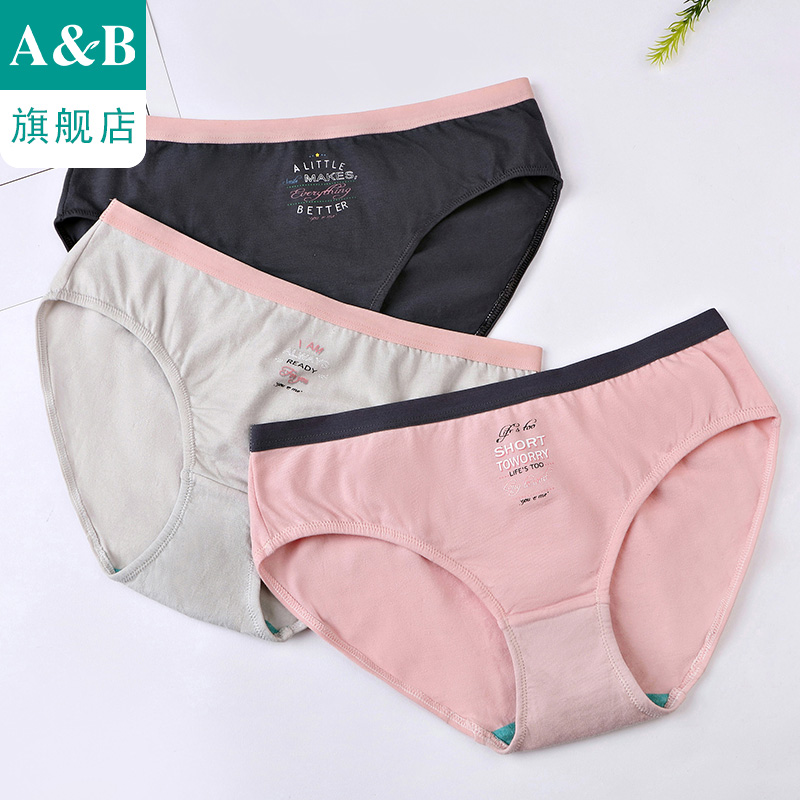 A&Bab内裤【3条装】女弹力印花抗菌中腰三角裤舒适少女短裤Y534