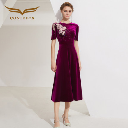 创意狐礼服裙女宴会气质中长款婚礼婚宴妈妈小礼裙连衣裙婆婆晚装