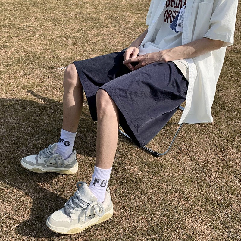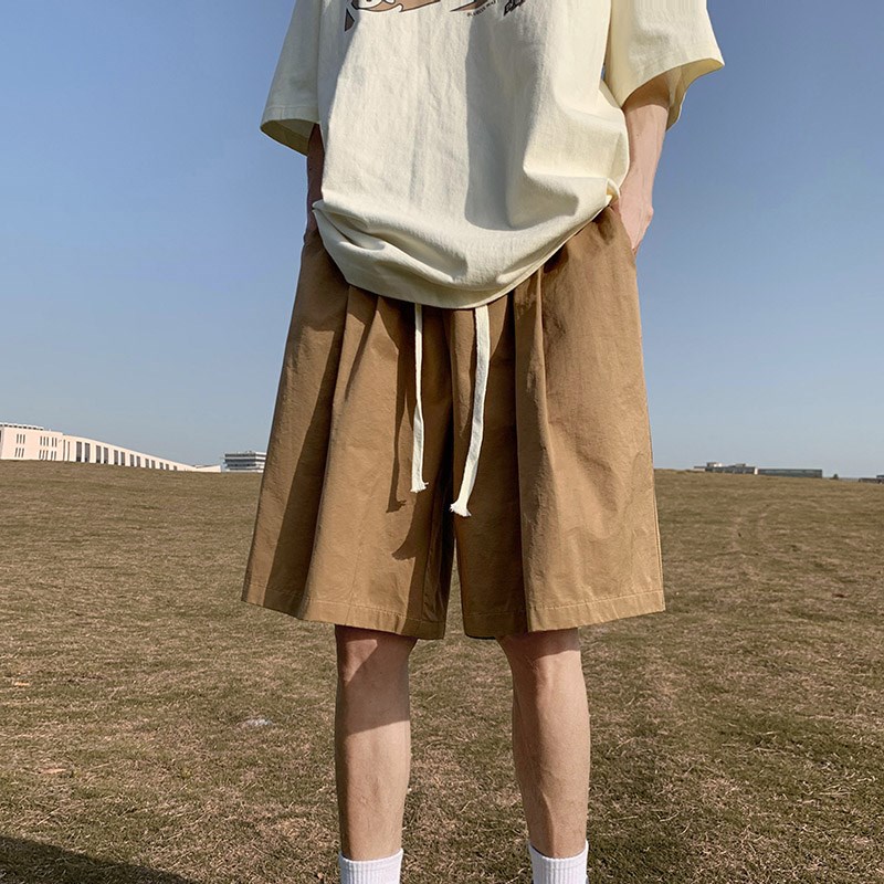 卡其色工装短裤男款夏季宽松运动休闲裤子潮牌直筒阔腿沙滩五分裤