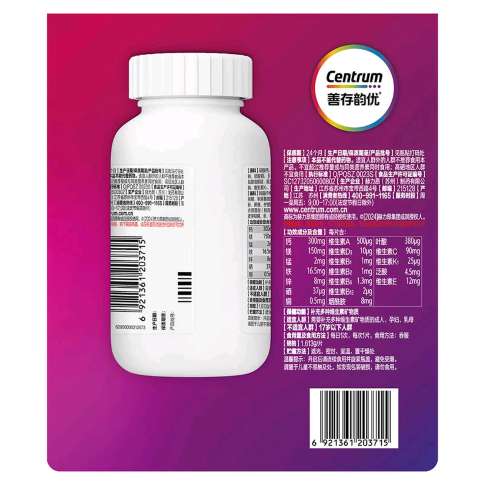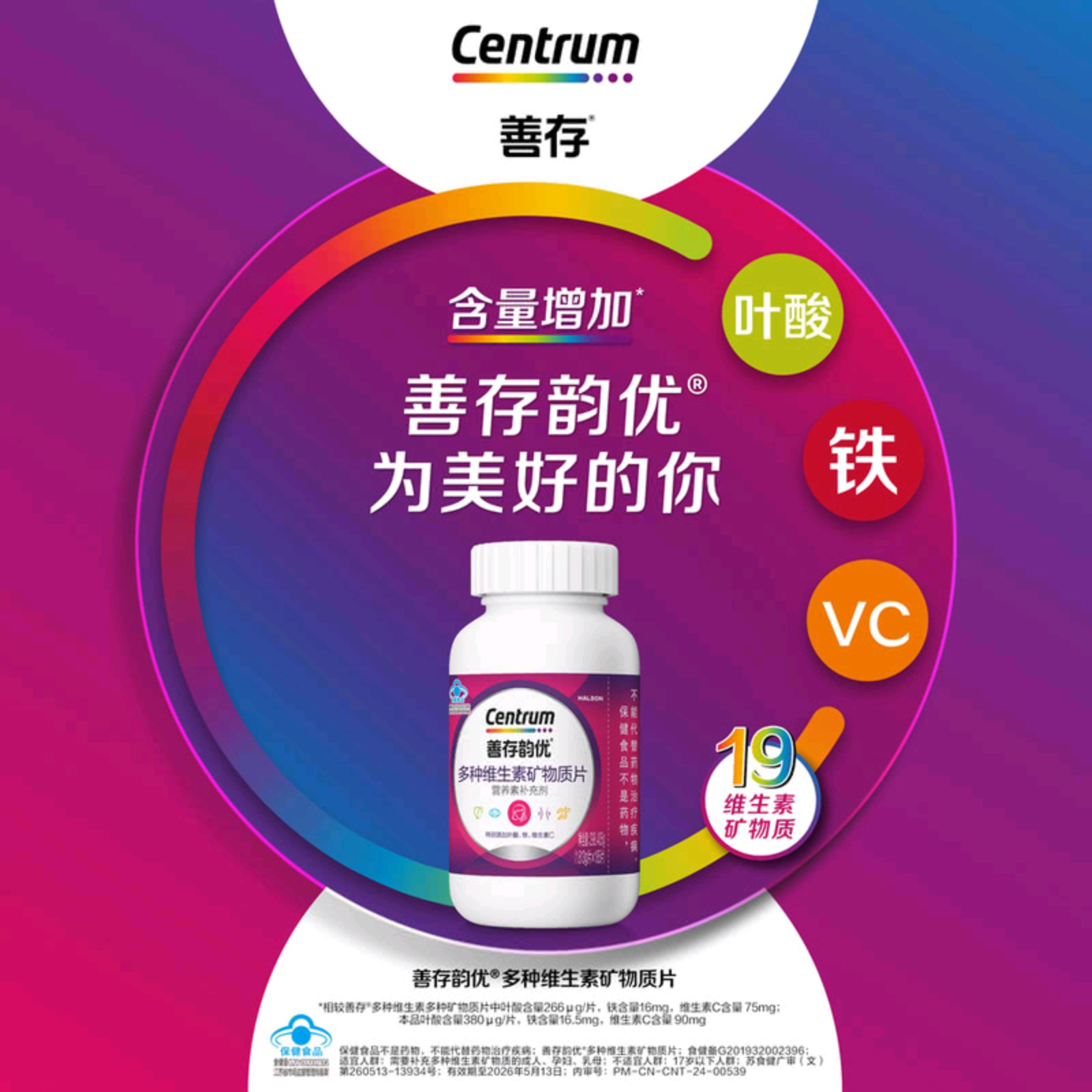 山姆善存韵优多种维生素矿物质185添加叶酸铁维生素C营养素补充片