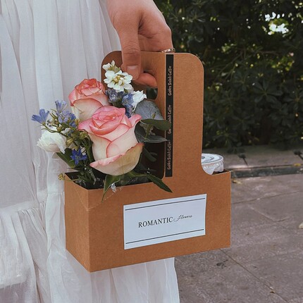 鲜花奶茶手提盒牛皮纸包装盒插花