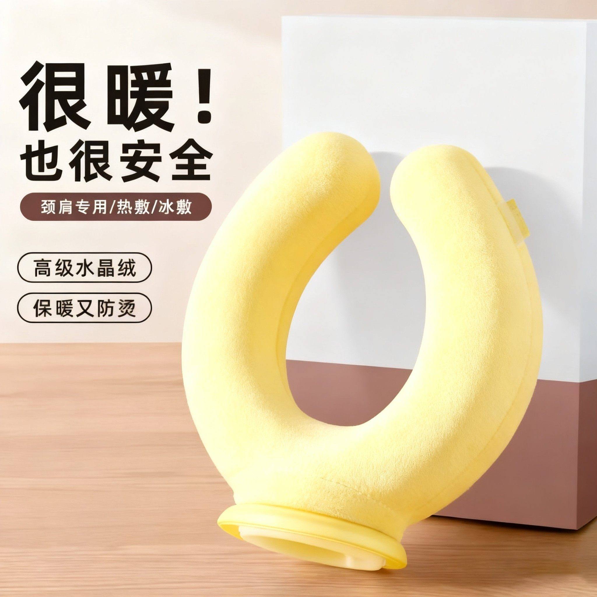 新款小U型挂脖式注水暖水袋颈椎专用U型热水袋热敷脖子降温冷热敷