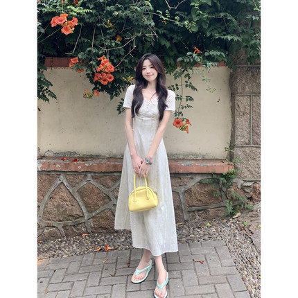 Even一雯【夏日青提】韩系高智感法式气质蕾丝拼接日常短袖连衣裙