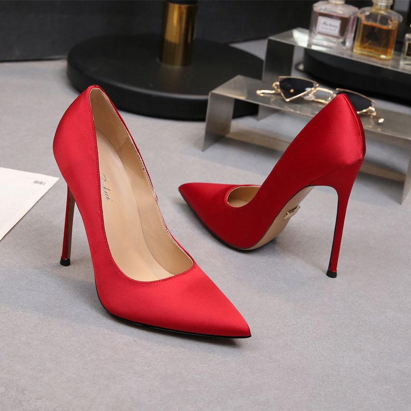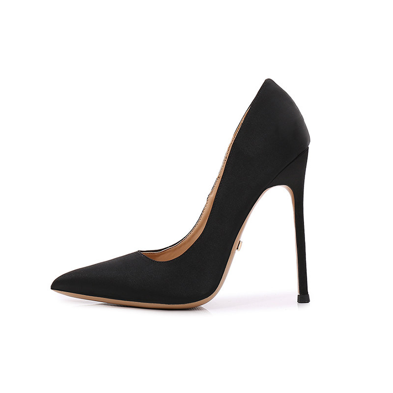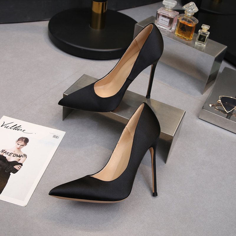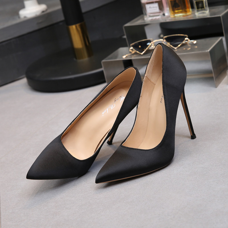 黑色气质绸缎10厘米性感职业高级不累脚高跟鞋御姐女单鞋夏季百搭