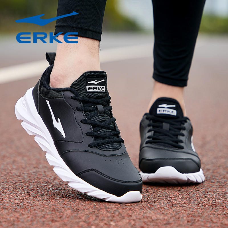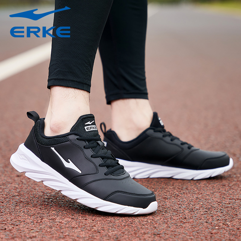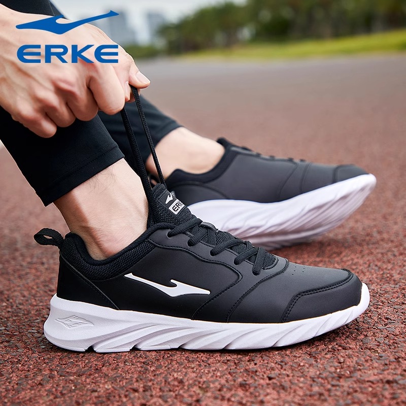 鸿星尔克官方旗舰店男鞋2025新款防水防雨皮面运动鞋软底跑步鞋子