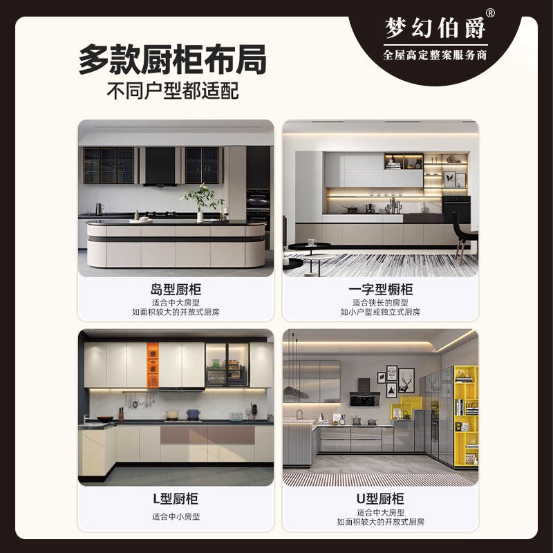 不锈钢整体橱柜定制开放式现代简约厨房轻奢橱柜定做厨房全屋定制