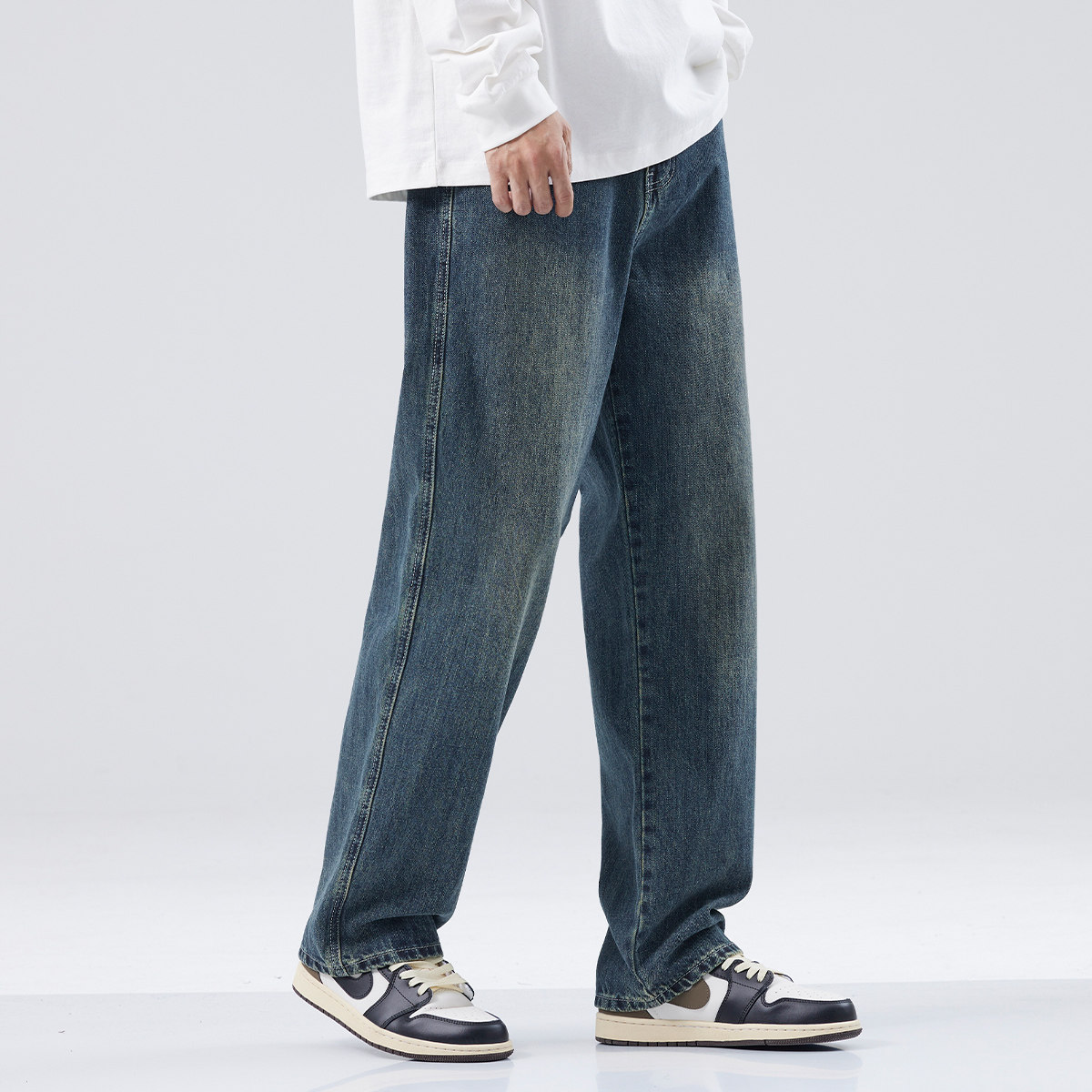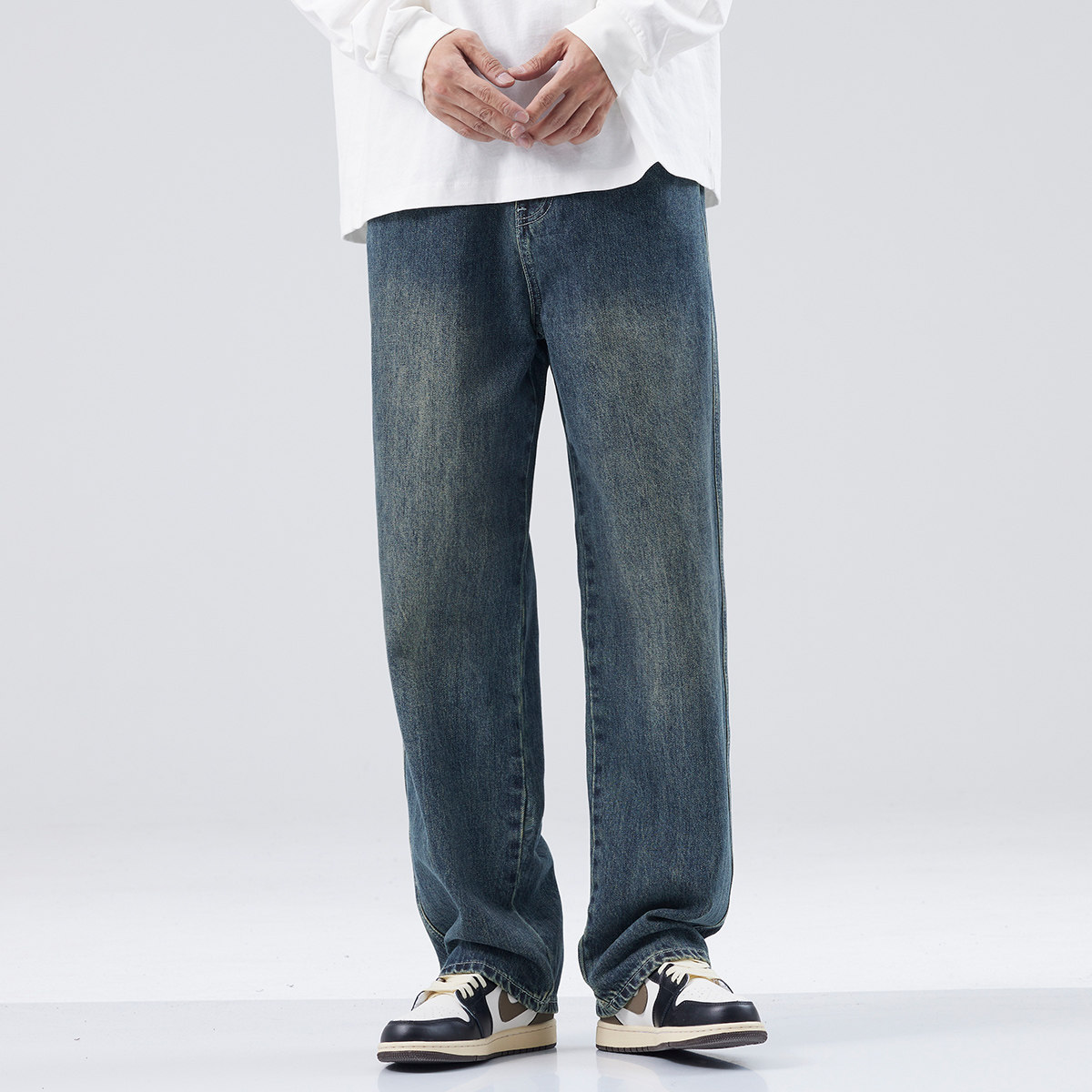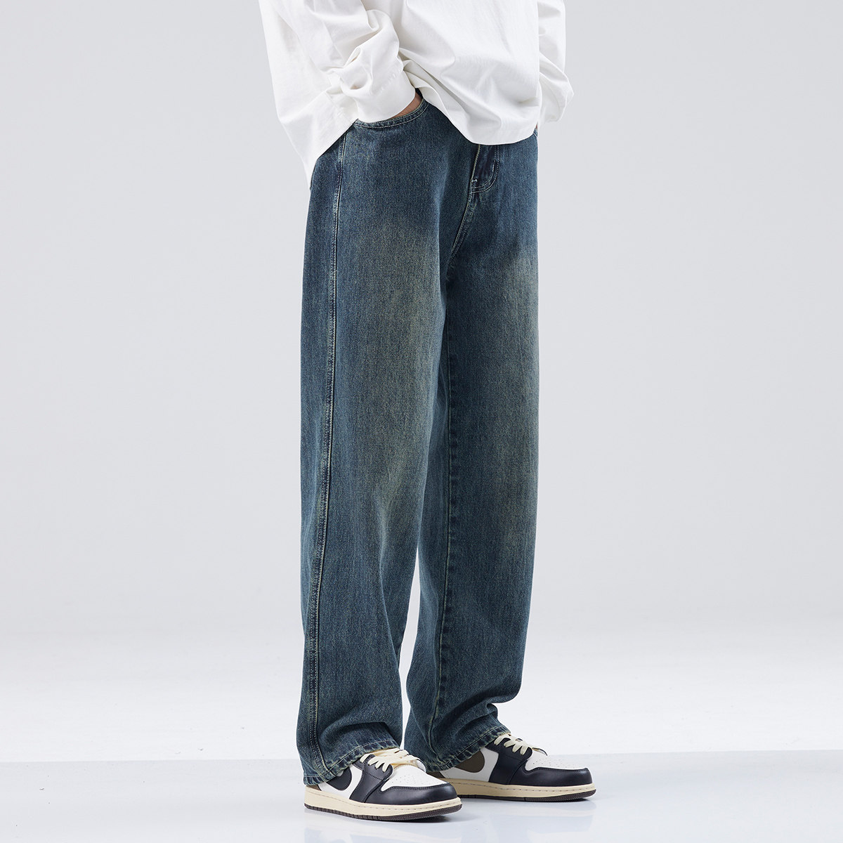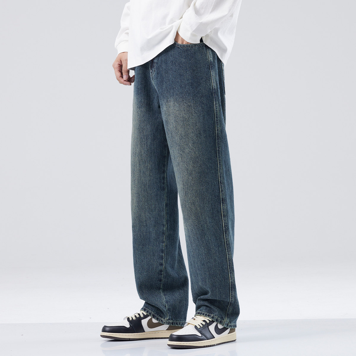 hansca宽松直筒牛仔裤男2025春秋季耐磨复古水洗做旧宽松阔腿长裤