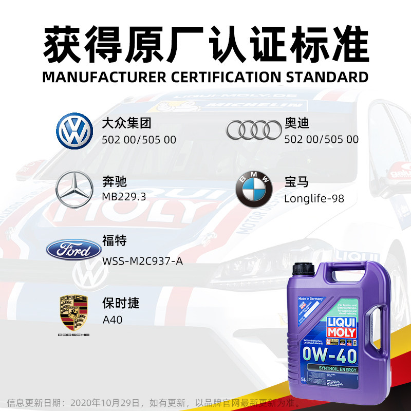 德国力魔原装进口能量型全合成机油0W-40性能汽车引擎PAO润滑油5L