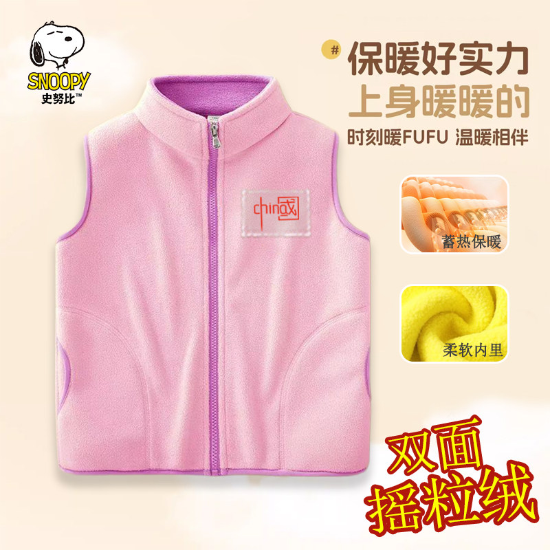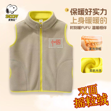史努比男童女童2026春秋新款时尚休闲百搭舒适双面摇粒绒保暖马甲