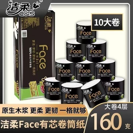 洁柔160g卷纸卷筒纸黑Face加厚4层卫生纸巾大克重厕纸手纸有芯