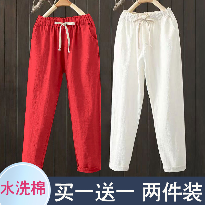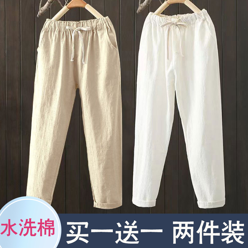 小众九分裤女2025年夏季洗水棉薄款宽松哈伦裤显瘦高腰休闲裤子女