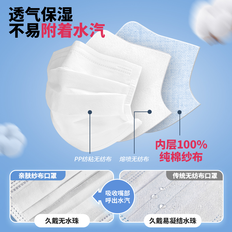 家至宝一次性口罩纱布内层纯棉不勒耳敏感肌专用防过敏防流感薄款