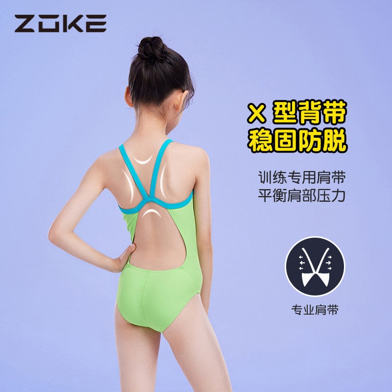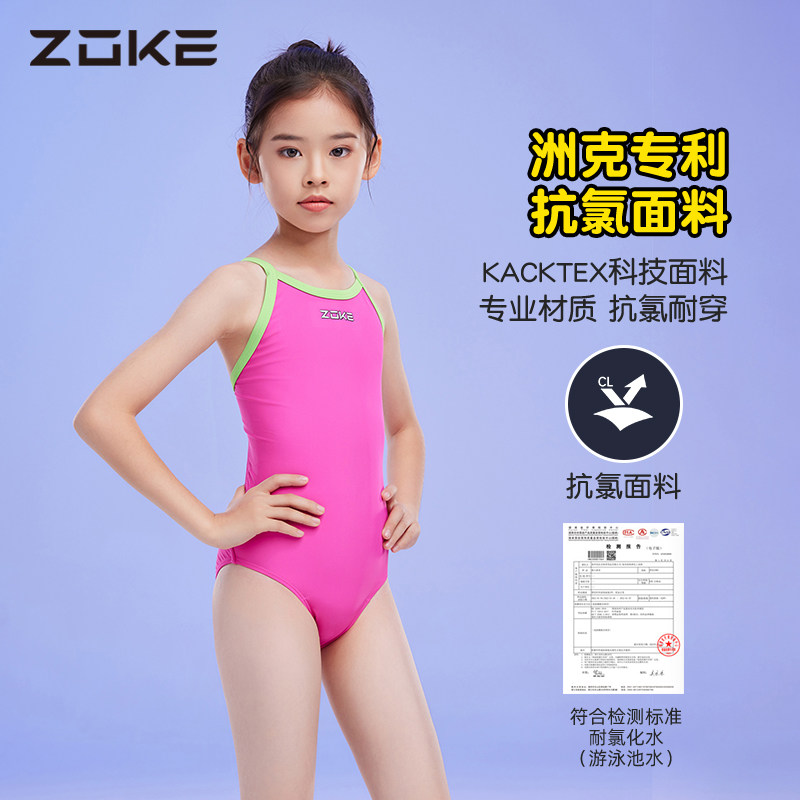 洲克三角连体儿童泳衣2024新款女童抗氯青少年专业训练女孩游泳衣