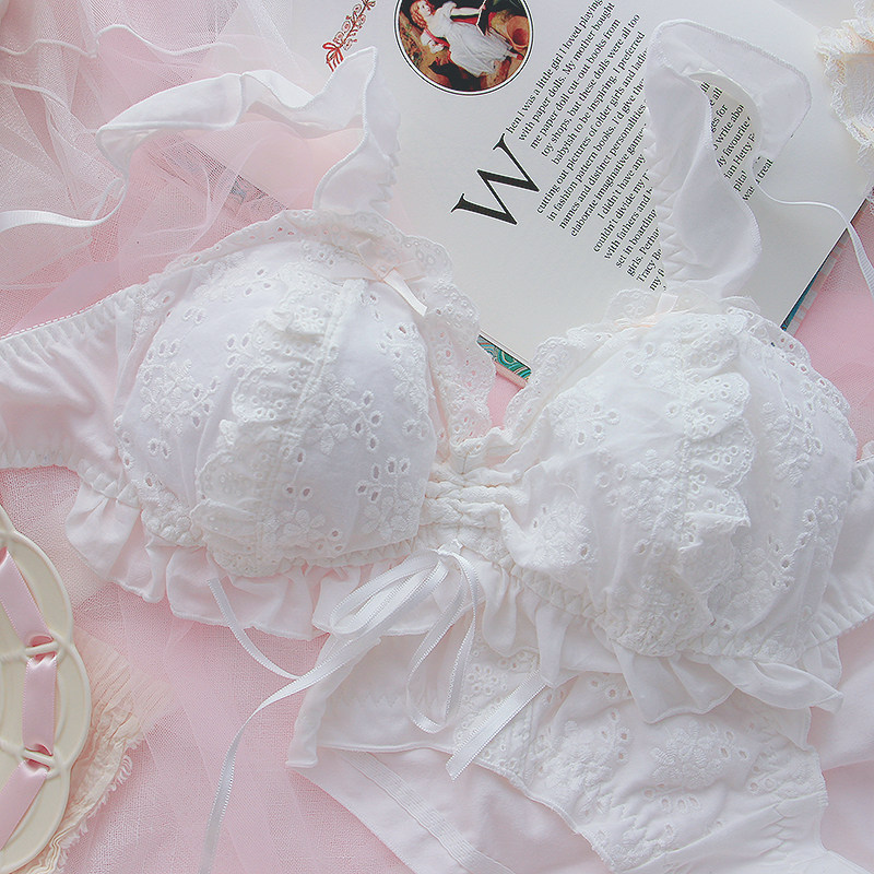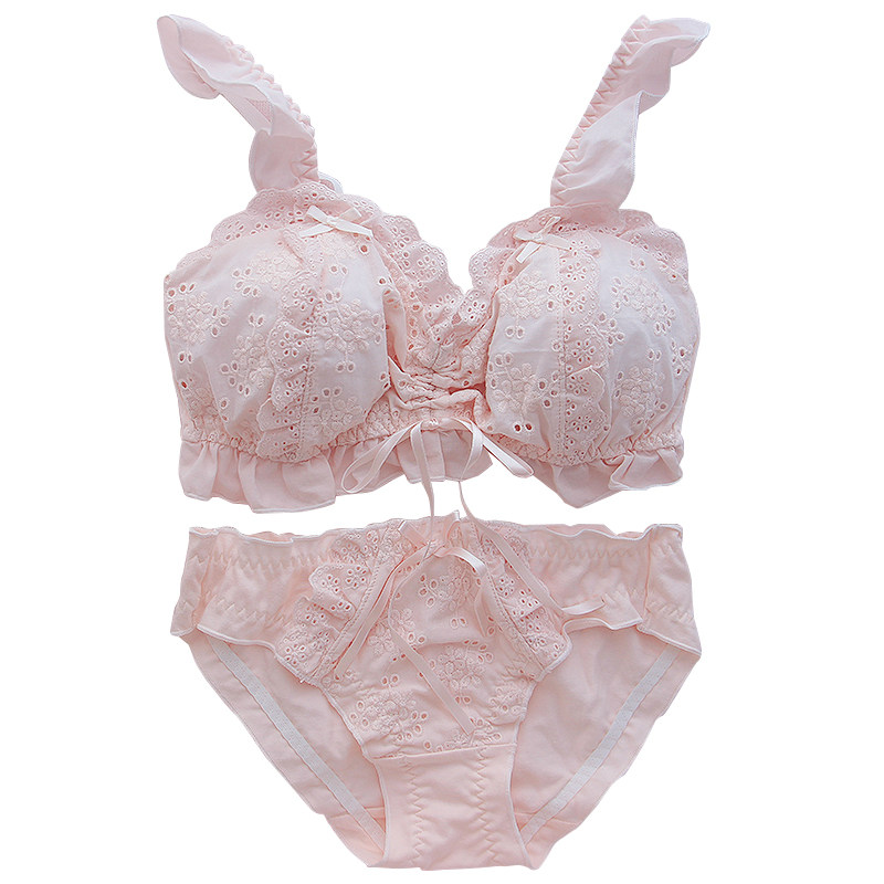 日系花瓣少女心甜美公主可爱内衣薄款小胸bra无钢圈纯棉文胸套装