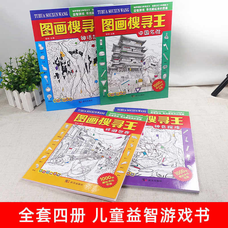图画搜寻王全套4册大本隐藏的图画少儿3-6-8-9-12岁小学生儿童益智游戏书捉迷藏幼儿专注力训练书籍迷宫找不同极限视觉挑战图画书