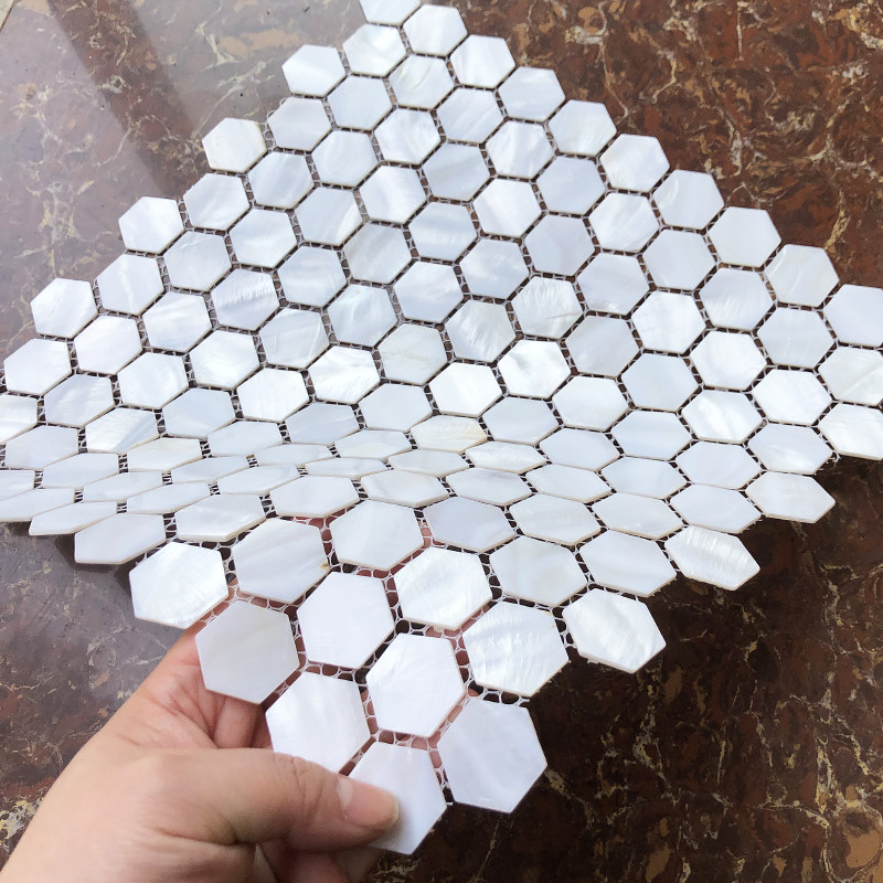 六角六边形贝壳马赛克多边形瓷砖白色卫生间厨房背景墙防水墙贴