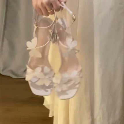 气质仙女风2025年夏季新款一字扣带凉鞋女蝴蝶细跟方头罗马高跟鞋