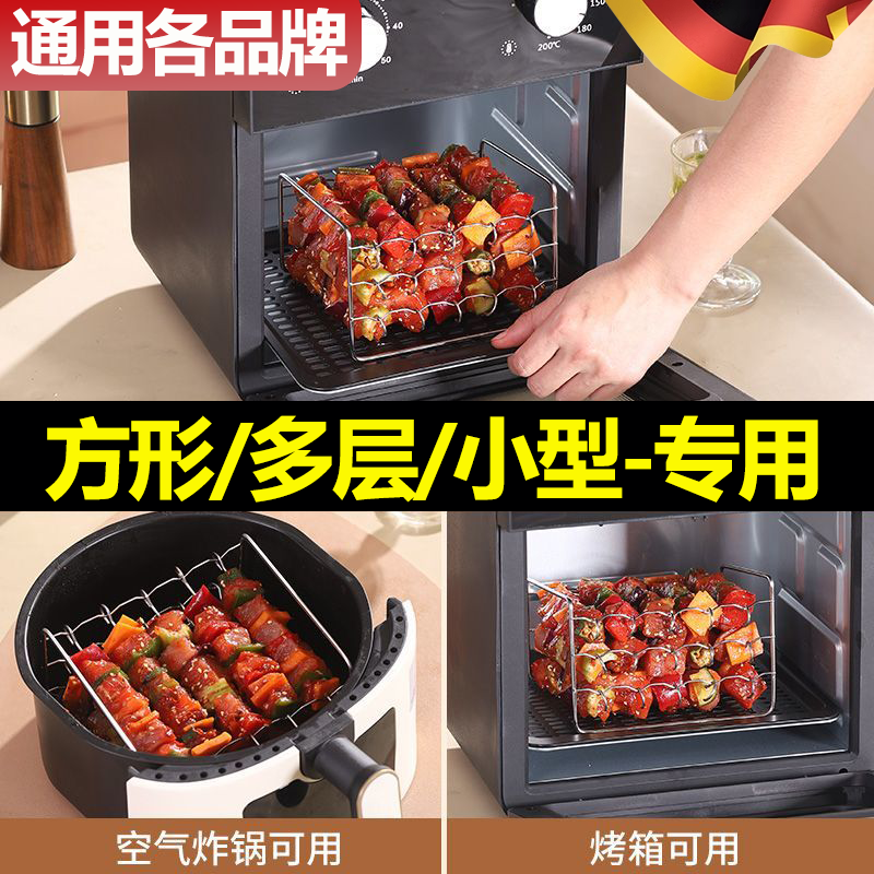 不锈钢空气炸锅烤架烧烤架烤串架烤箱烤肉架三层蒸架烘焙用具爆款