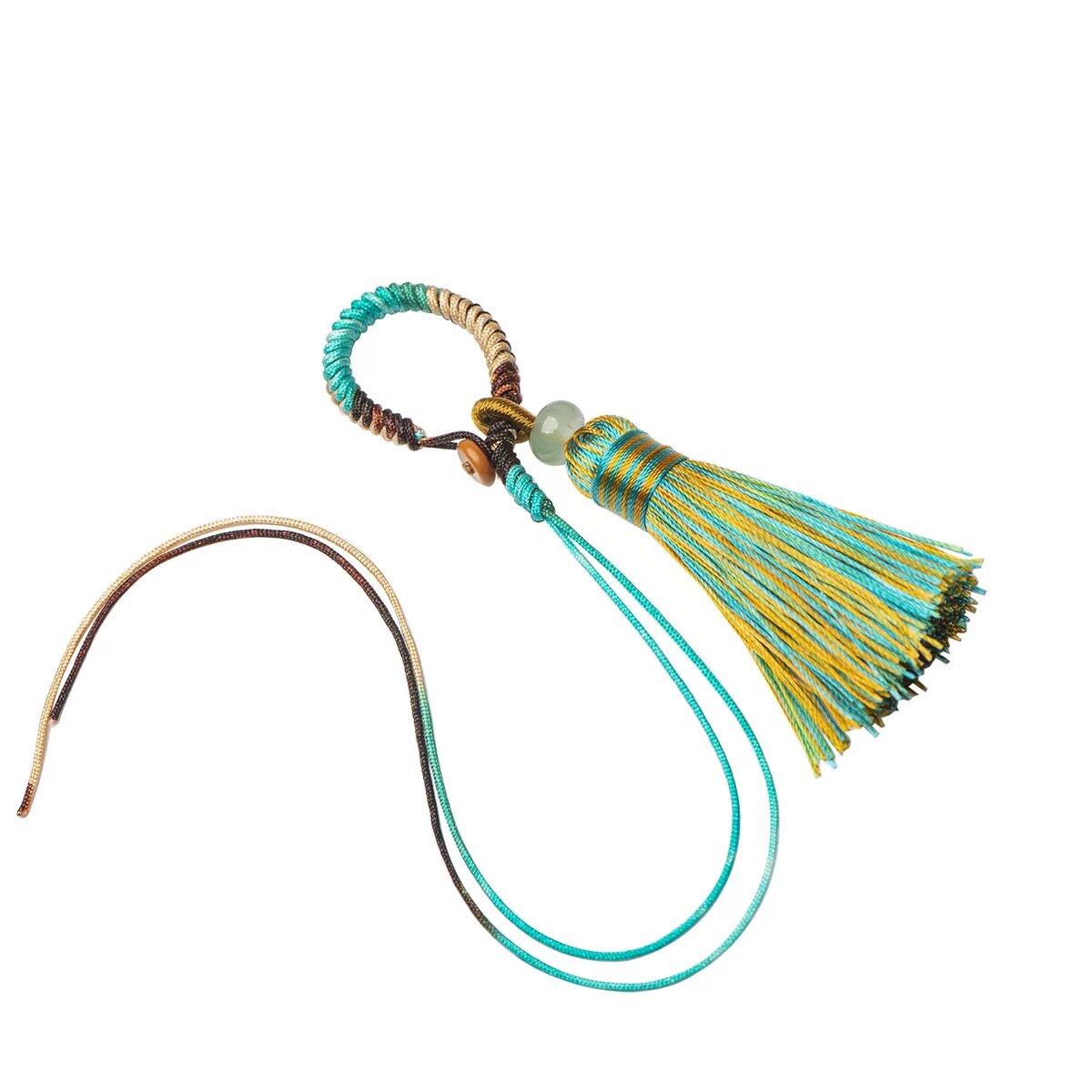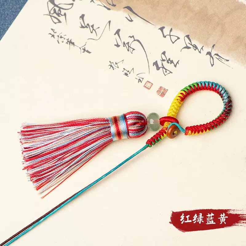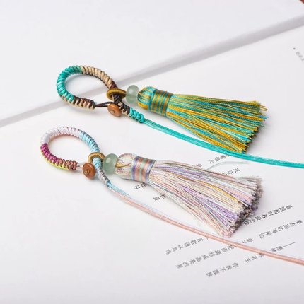 编织指环扣流苏穗DIY渐变色金刚结挂绳半成品钥匙扣吊坠配件包挂