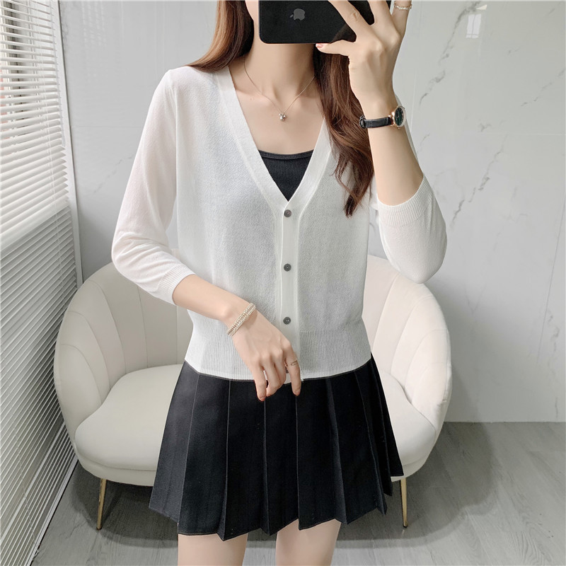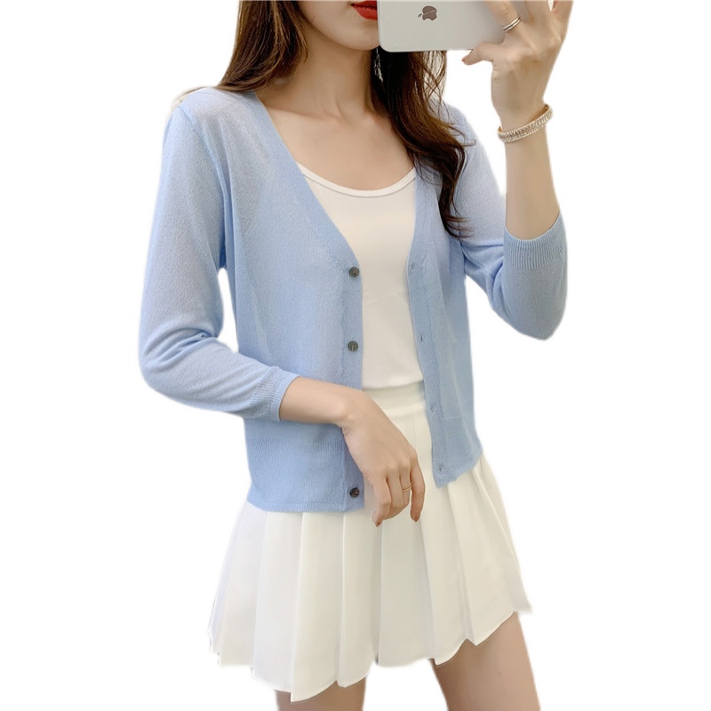 冰丝针织衫2024新款夏季外搭超薄透开衫女外套百搭毛衣短款空调衫