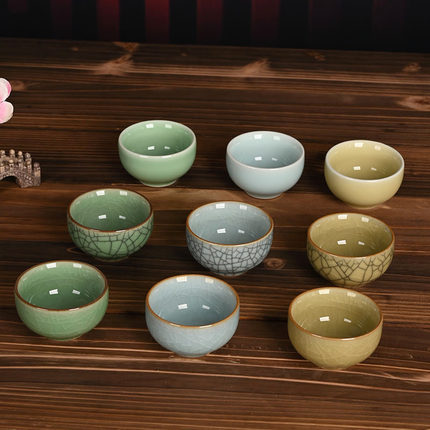流转千年复古青瓷功夫茶具茶道创意陶瓷品茗杯主人单杯家用小茶杯