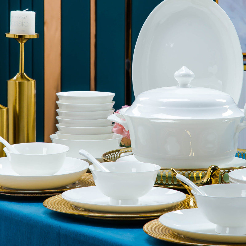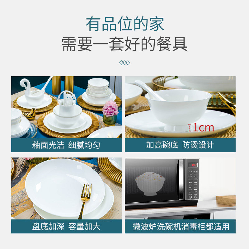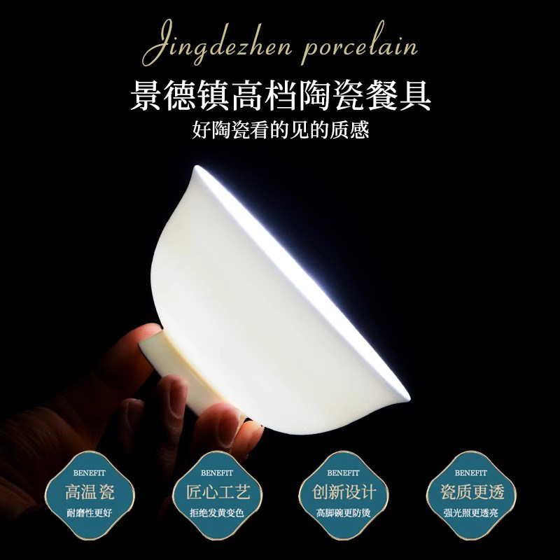 釉下彩纯白单品碗碟套装家用欧式轻奢2025景德镇陶瓷乔迁餐具碗盘