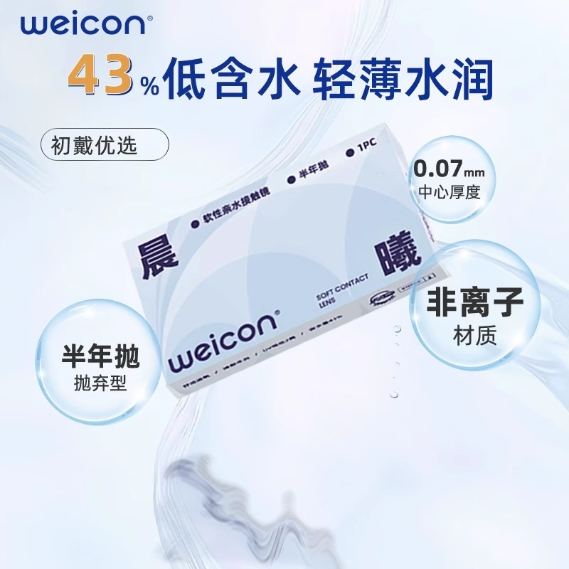 卫康隐形近视眼镜晨曦半年抛1片装近视高清透明片初戴入门级