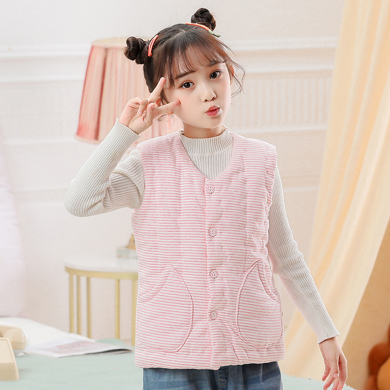条纹纯棉花中大童马甲手工缝制男女宝宝秋冬季加厚保暖居家棉背心