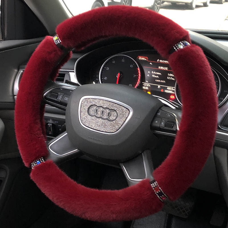 汽车方向盘套女韩国可爱短毛绒冬季保暖镶钻防滑不掉毛通用型把套