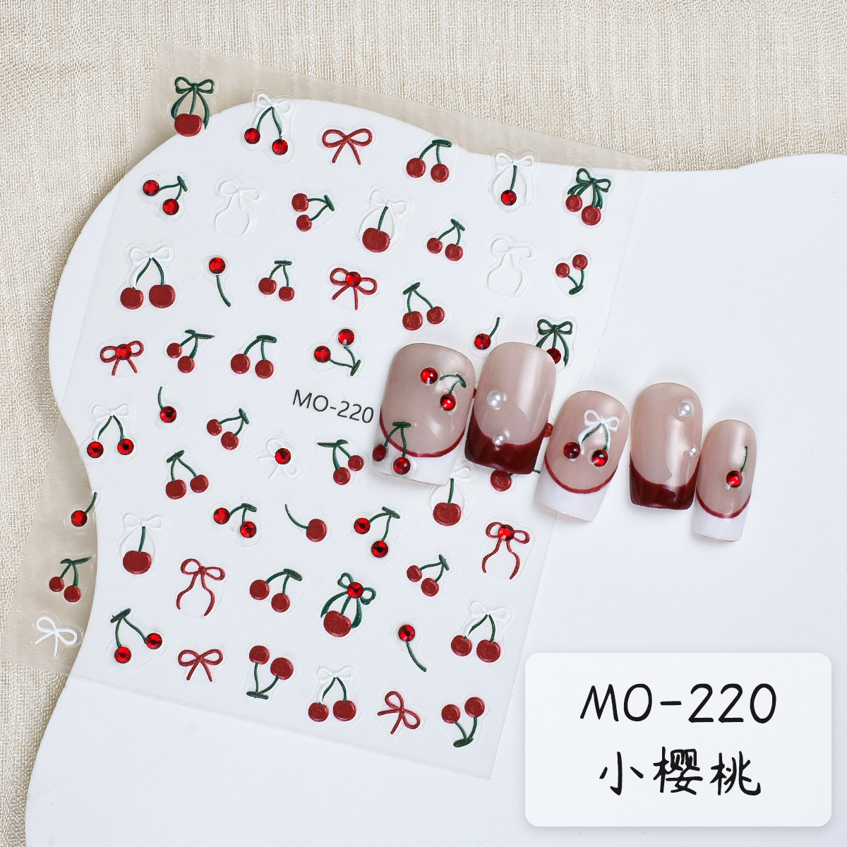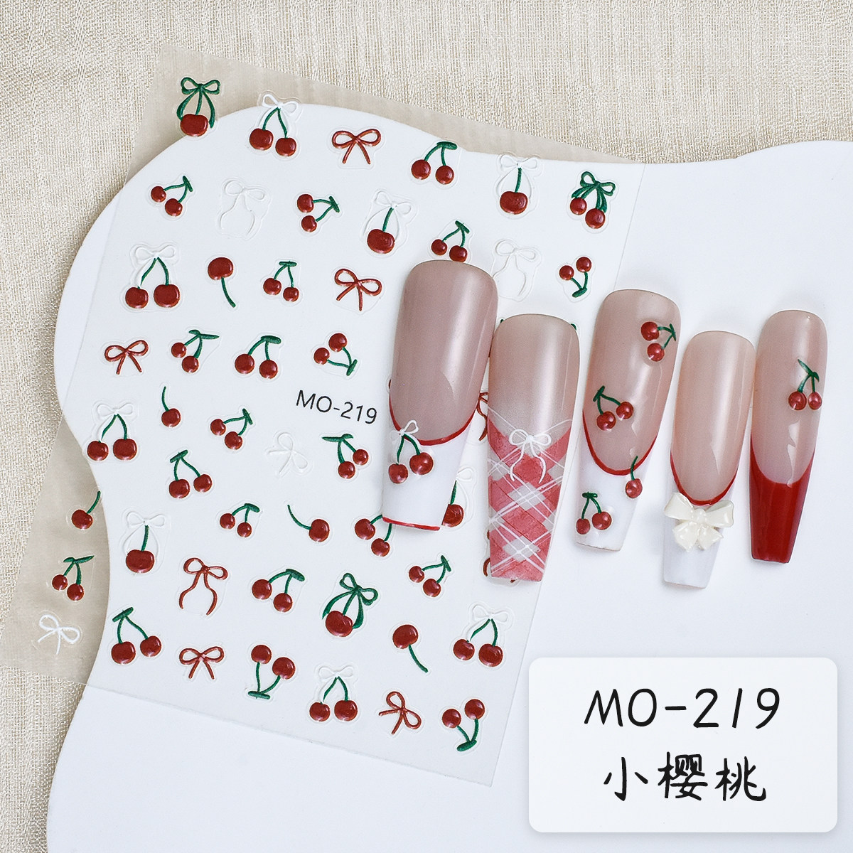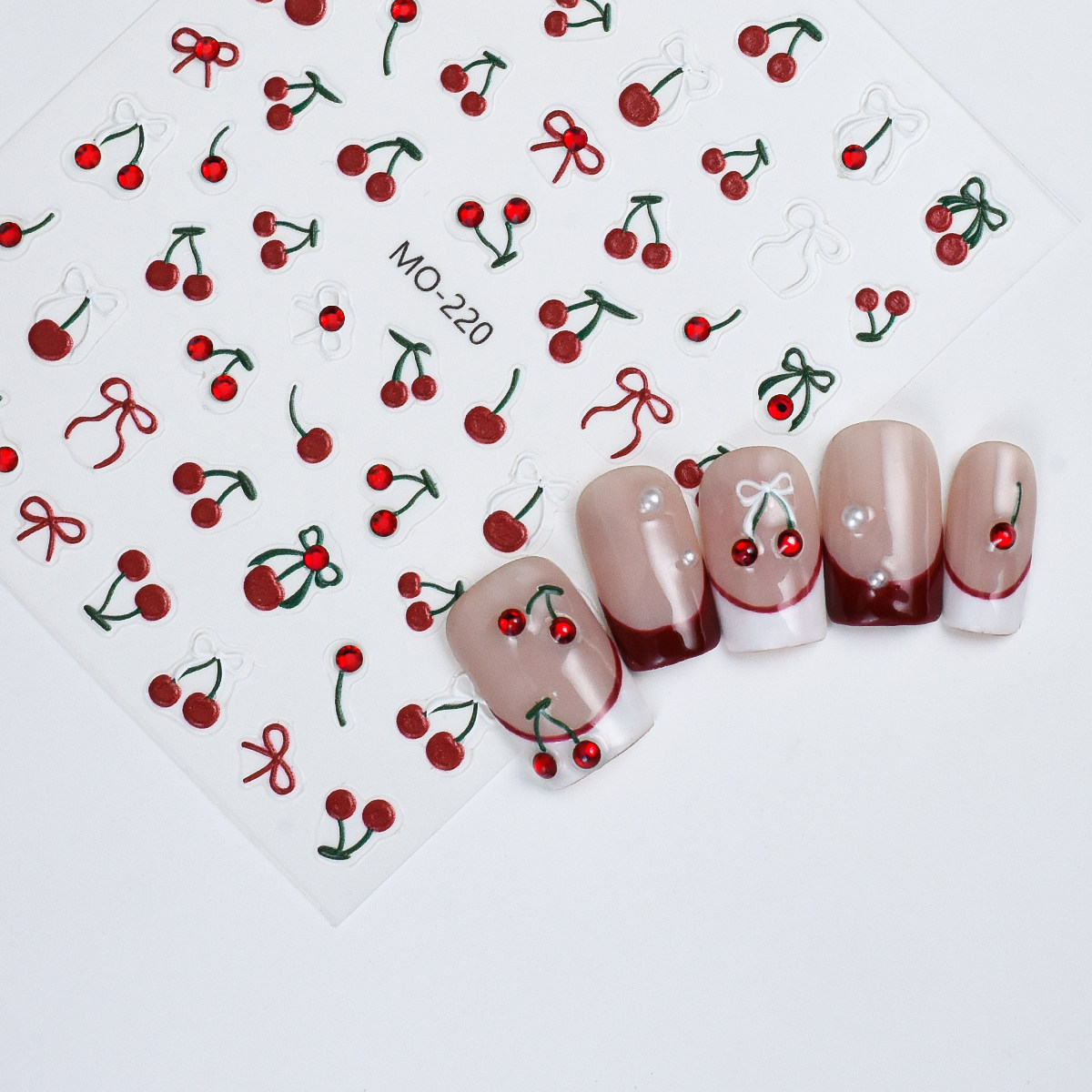 浮雕晶钻樱桃美甲贴纸小车厘子立体网红新款流行美甲贴花小姐姐