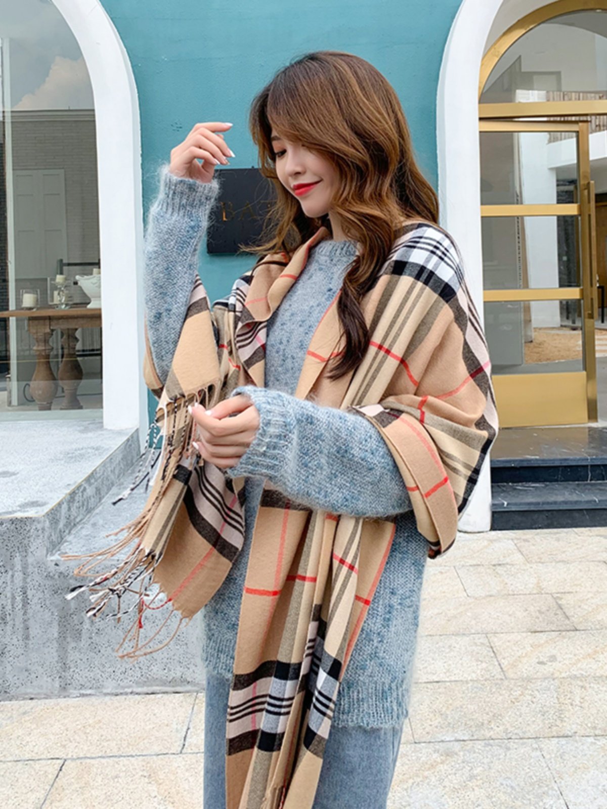 经典格子围巾女冬季保暖百搭亲肤格纹仿羊绒长款秋冬英伦披肩围脖