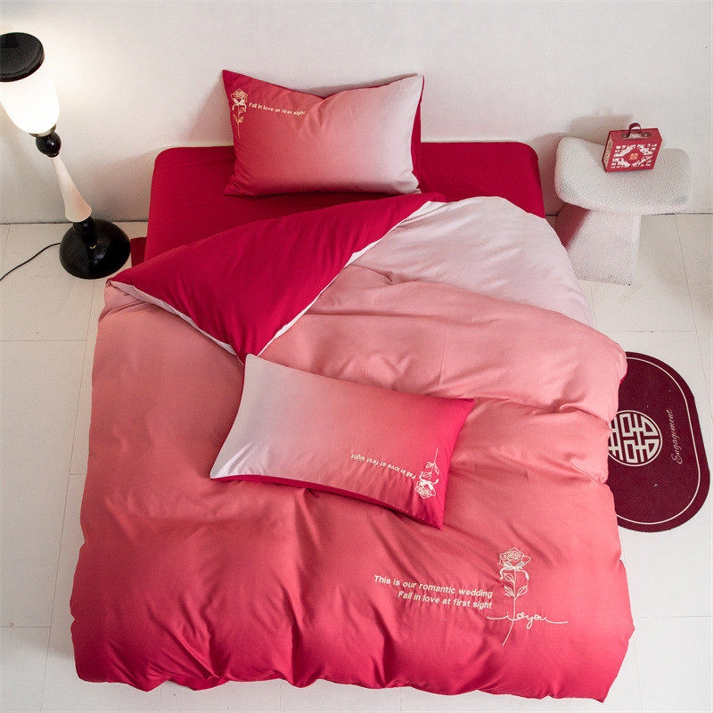 结婚床上用品四件套婚庆被婚房喜红色床单被套被单婚礼渐变色新婚