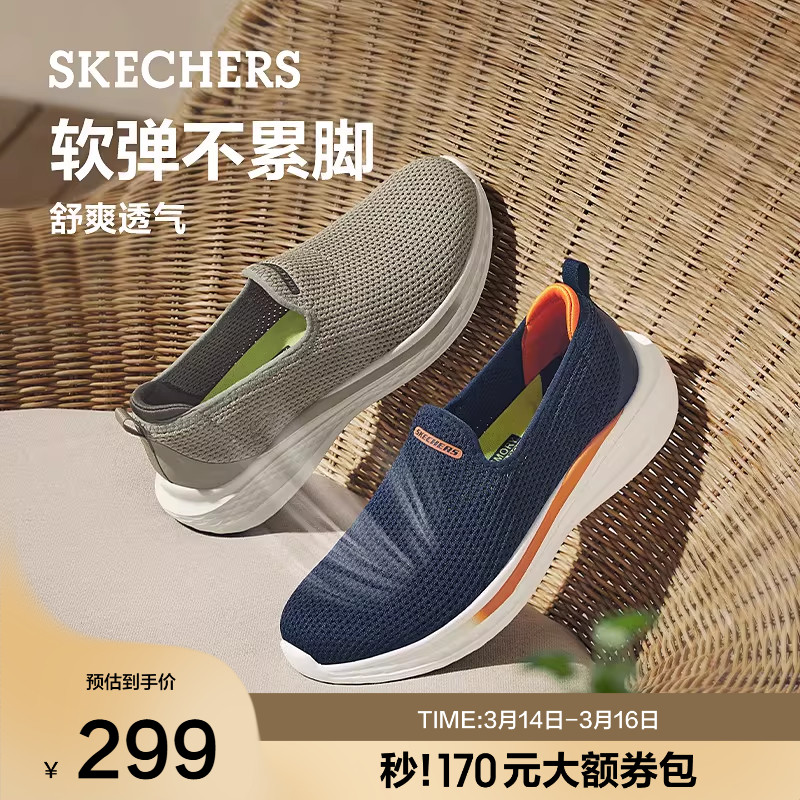 斯凯奇男鞋夏季新款运动休闲鞋一脚蹬软底健步鞋网面透气缓震