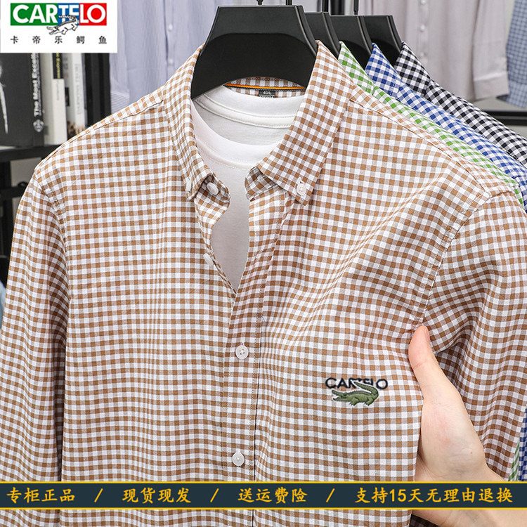 CARTELO卡帝乐鳄鱼100纯棉男士长袖衬衫格子衬衣新款上衣宽松寸衣