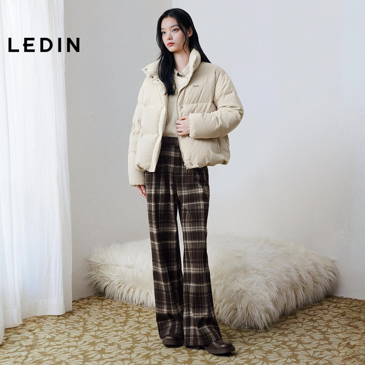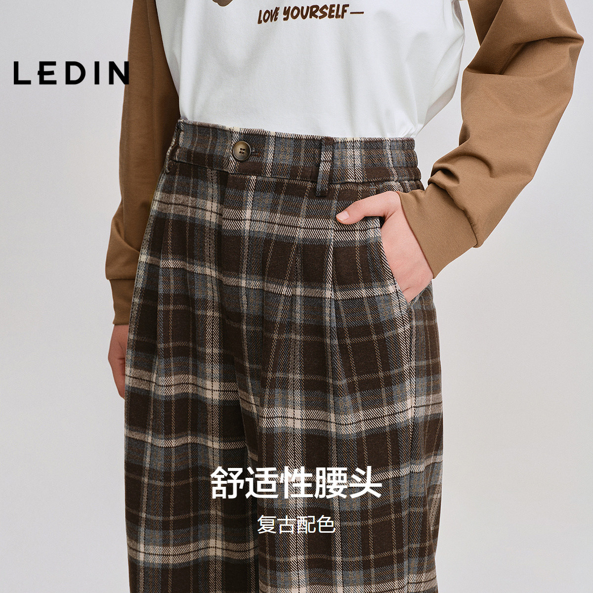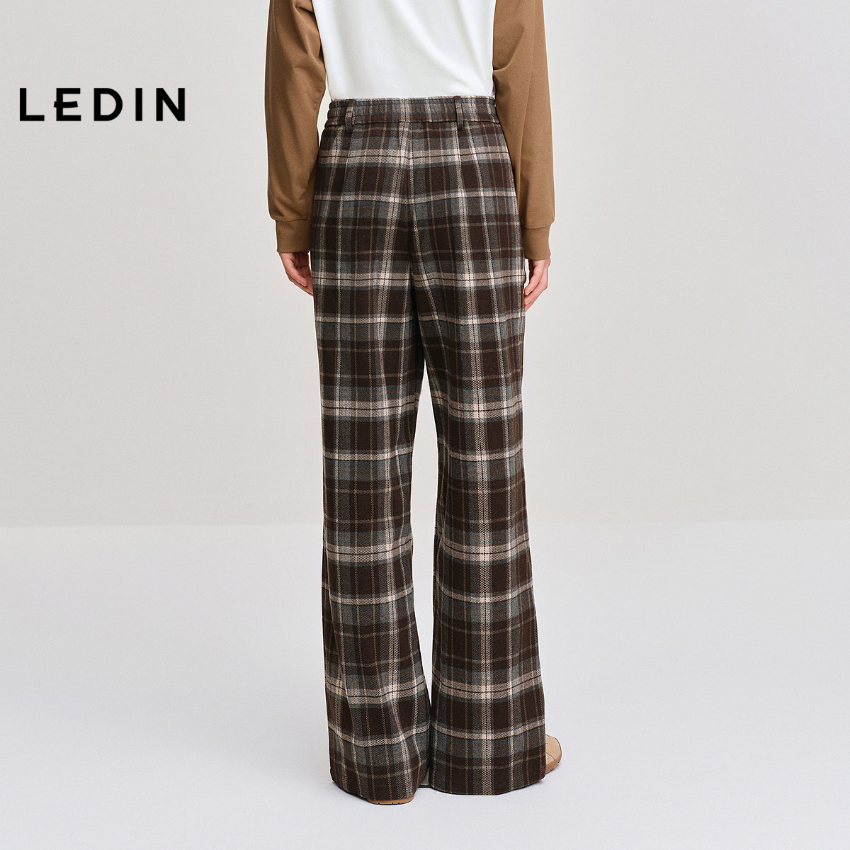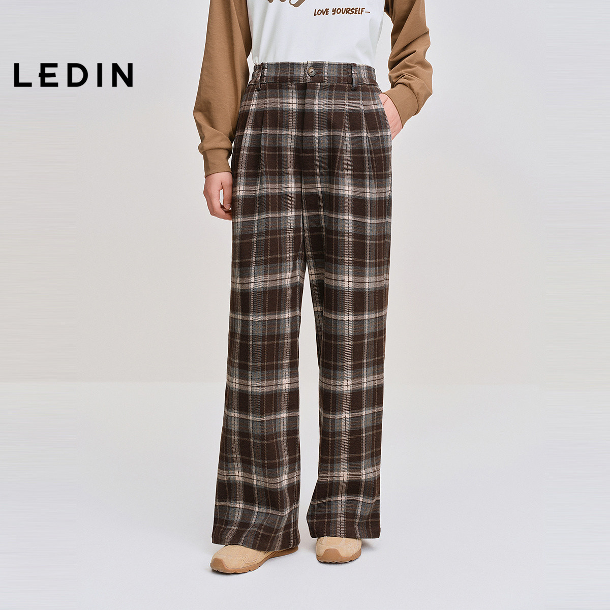 乐町复古格纹宽松直筒阔腿裤25年冬新款加厚磨毛针织松紧腰休闲格