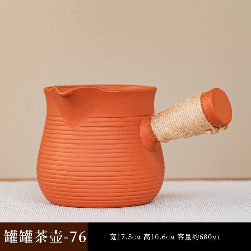 朱泥陶壶粗陶围炉煮茶壶手工紫砂烧水壶提梁砂铫壶家用烤奶罐罐茶