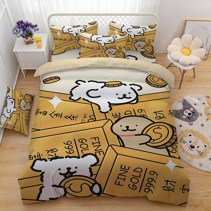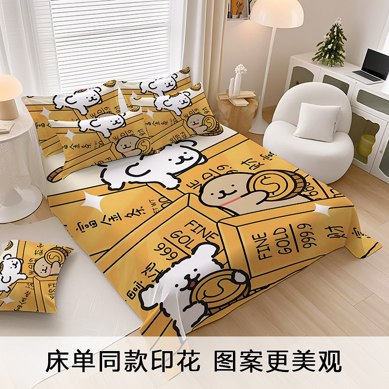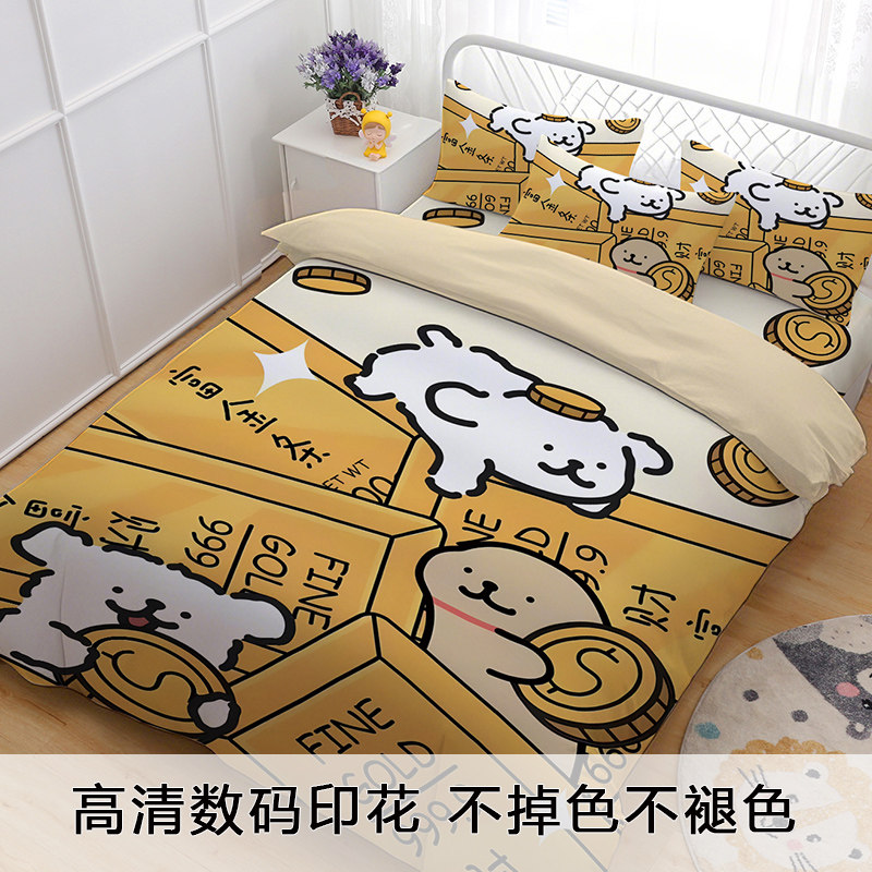 可爱线条小狗儿童卡通床单四件套学生宿舍单人被套被单床笠三件套