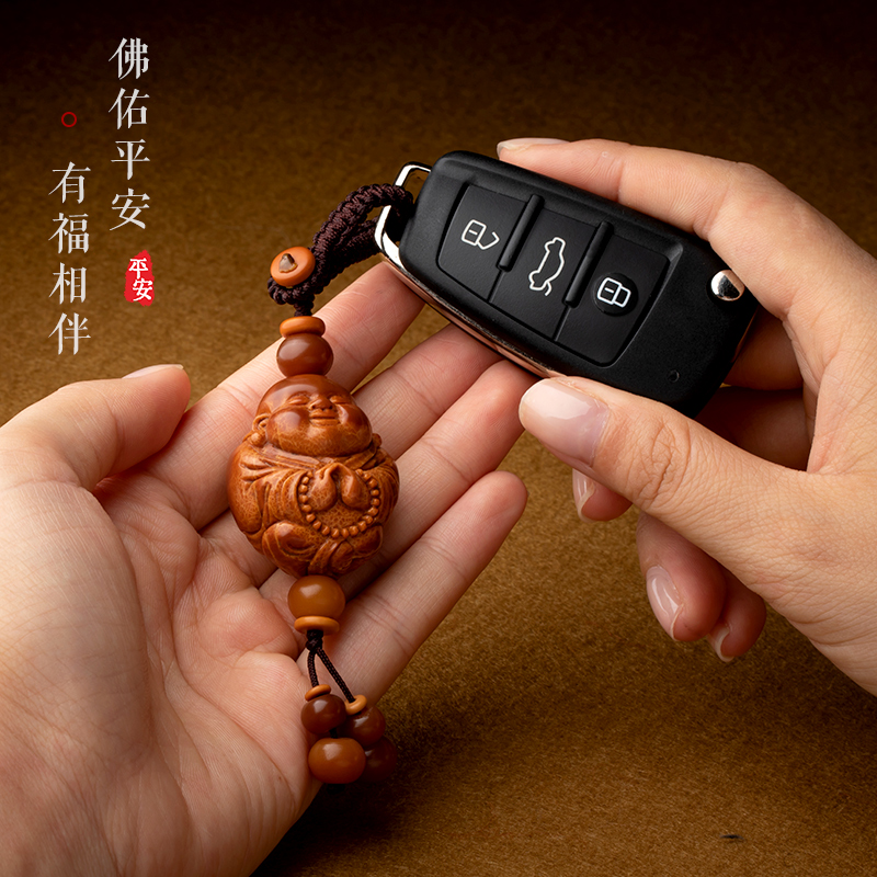 【亏米福利】天然橄榄核弥勒佛汽车钥匙扣挂件手工钥匙链挂坠男款