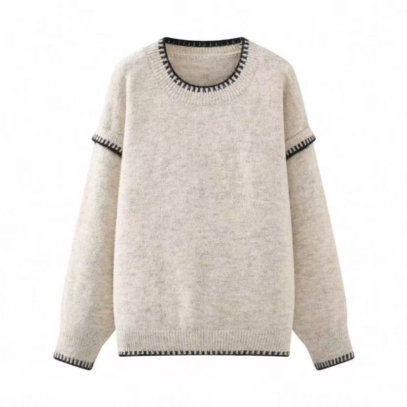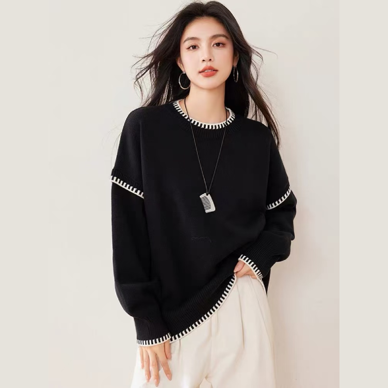 【蜜蜂欢乐社】二茵ERYIN秋冬新款长袖圆领拼色宽松加厚针织衫