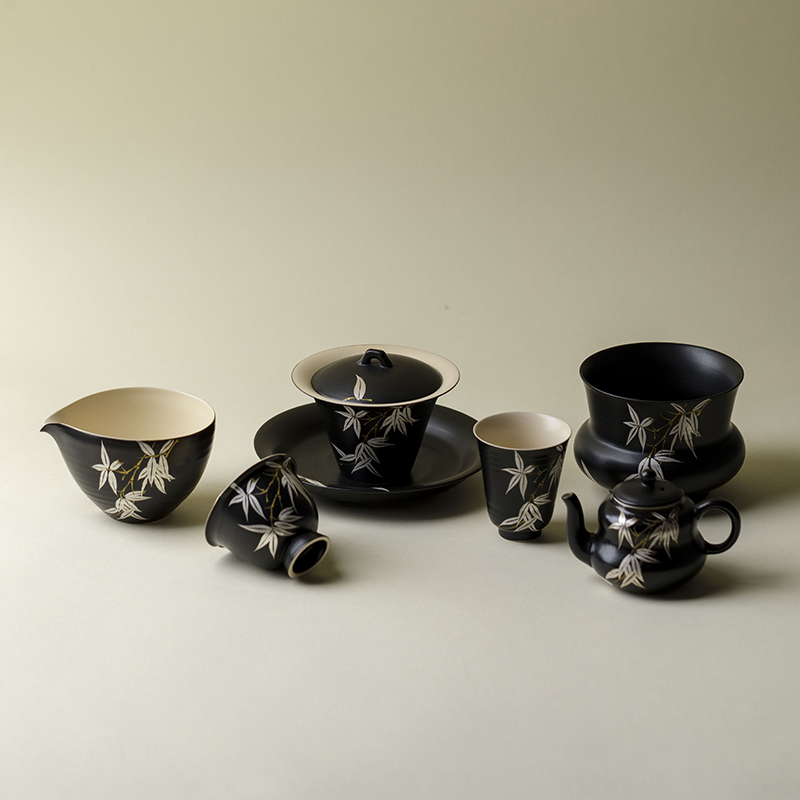 束刻 错金银彩竹陶瓷建水茶孟手绘茶具零配水孟废水缸茶洗茶渣缸