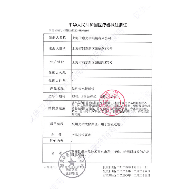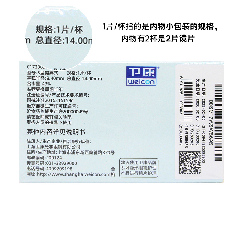卫康隐形近视眼镜半年抛2 透明片初露半年水润初戴轻薄舒适非日抛