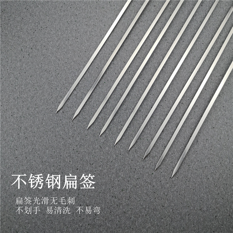 烧烤签子不锈钢扁签羊肉串烤针烧烤叉铁钎子35cm长户外用具包邮