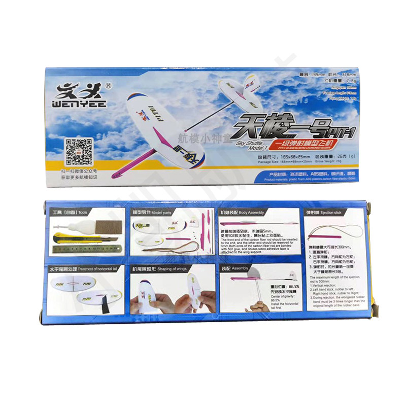 天梭一号弹射飞机P1T-1学生拼装模型航模比赛玩具橡筋滑翔机飞机
