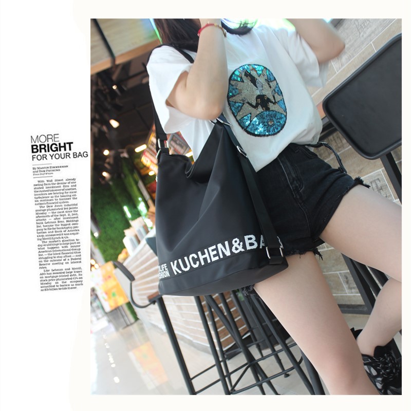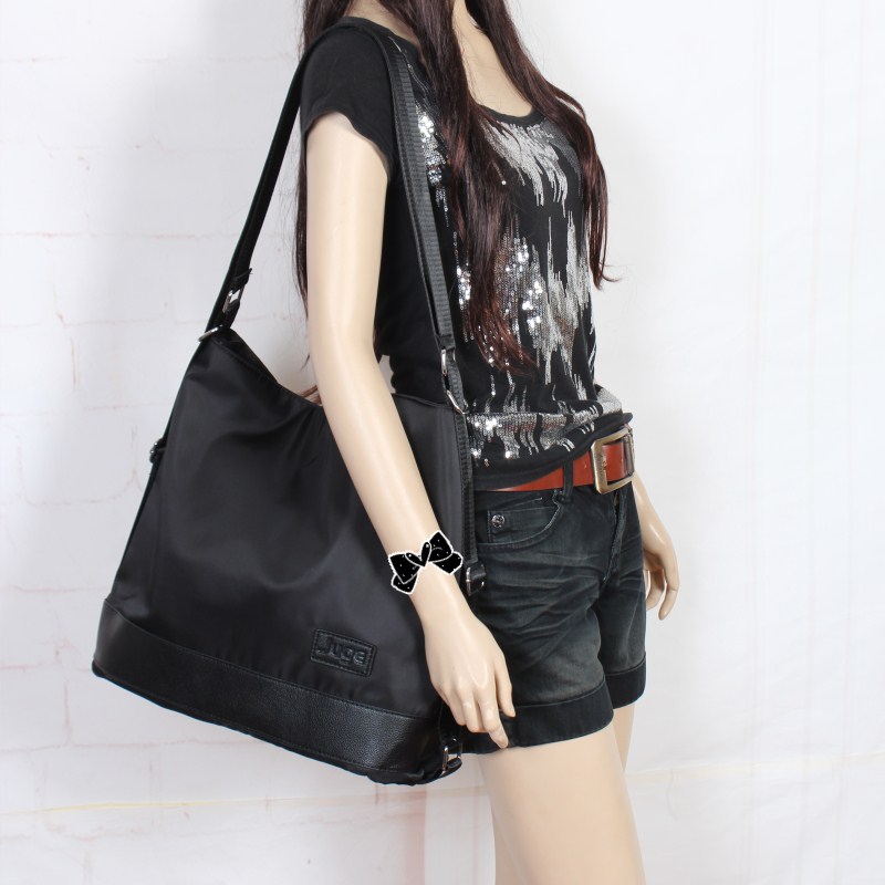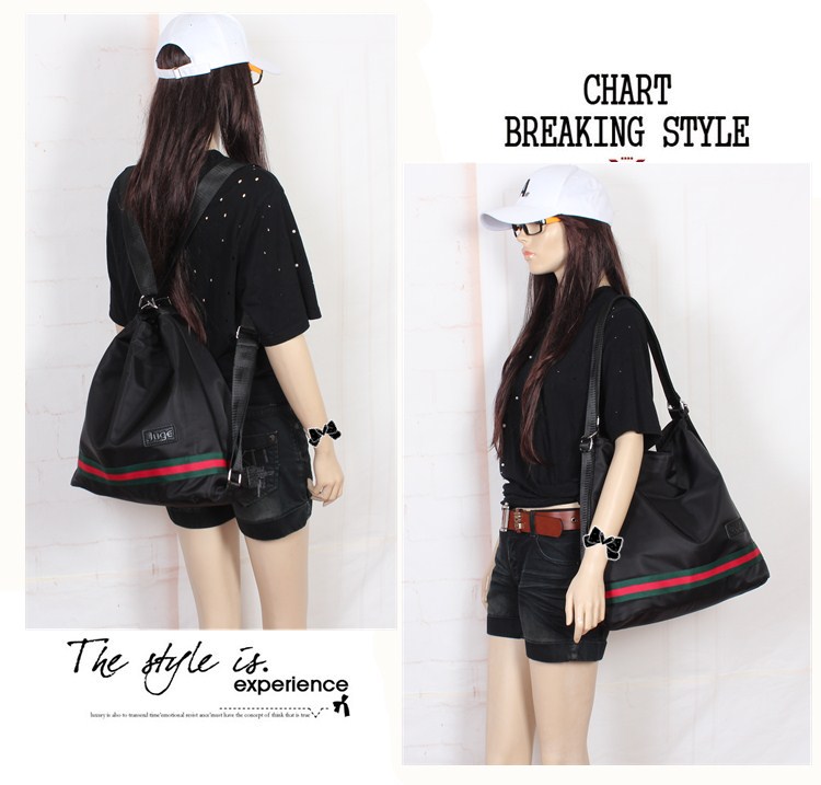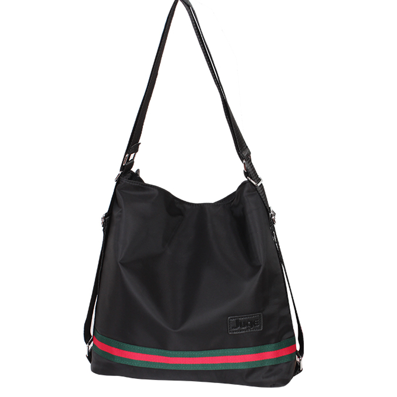 韩版尼龙单肩女牛津布双肩包两用黑色配彩带大包休闲背包时尚个性