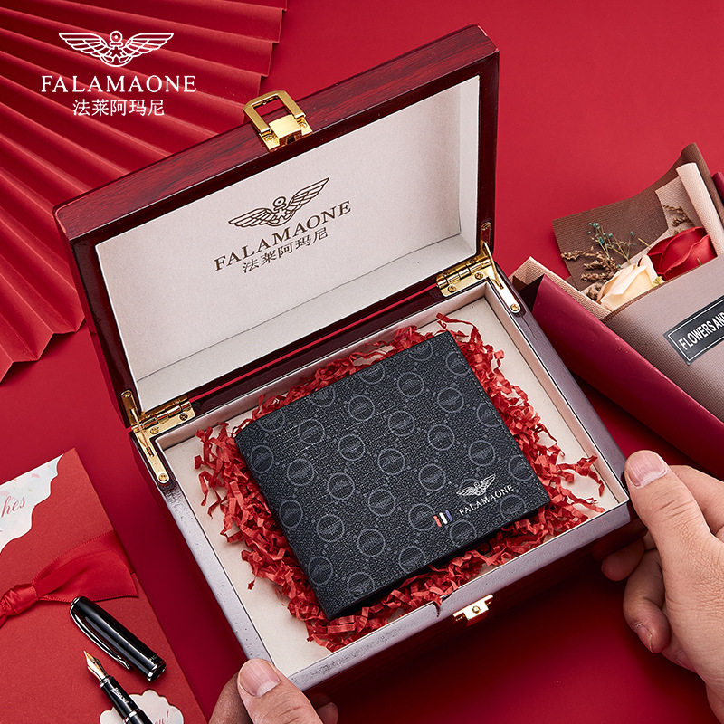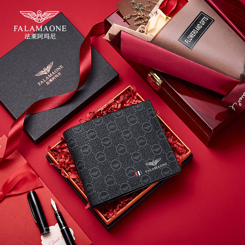 正品法莱阿玛尼男士钱包短款真皮钱夹高档生日礼物送男友2025新款