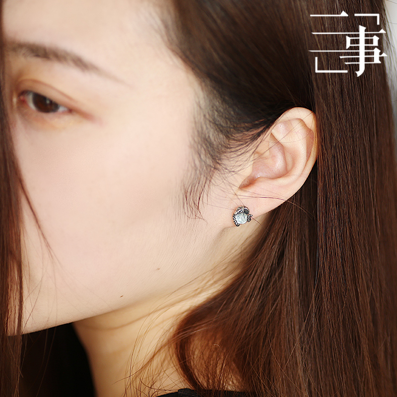 美杜莎之瞳纯银S925小蛇托帕石男女情侣款耳钉简约小巧冷淡风耳饰