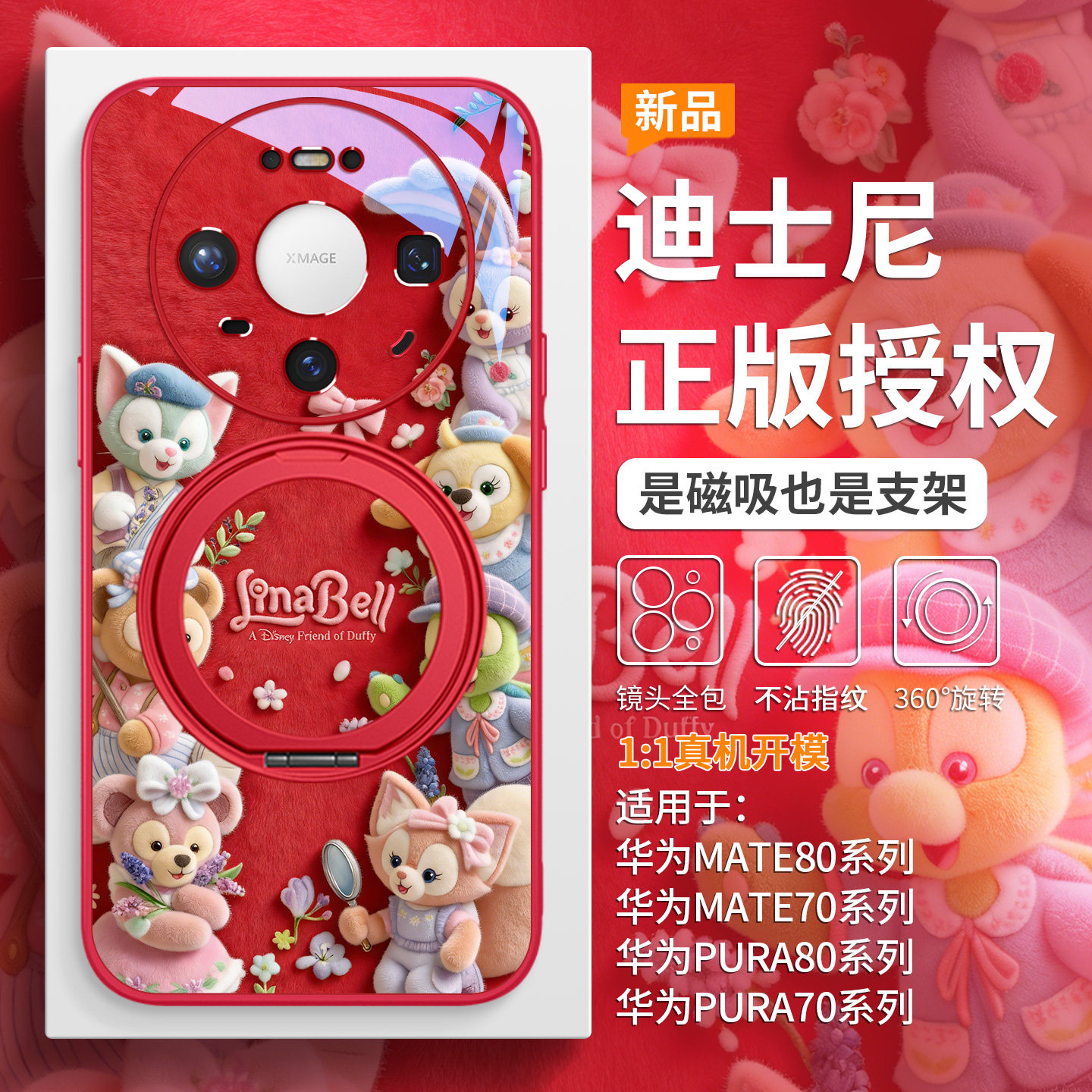 迪士尼适用华为mate80磁吸手机壳带支架pura80毛绒玲娜贝儿mate70pro秋冬氛围感pura70可爱少女心mate60pro套