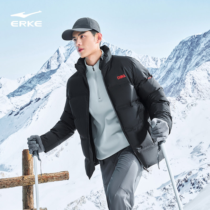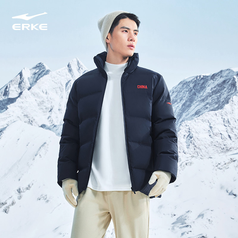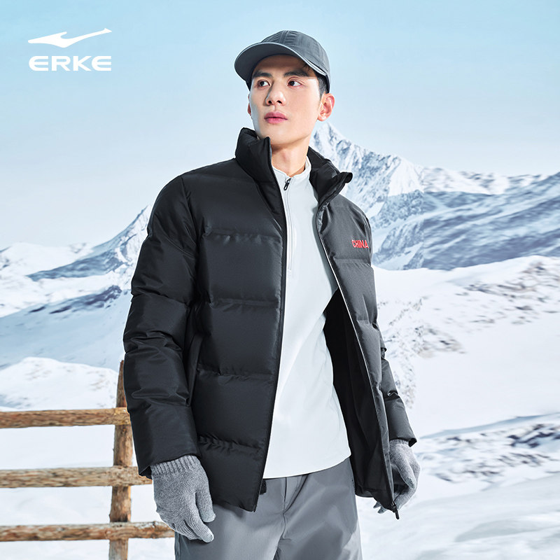 鸿星尔克中国羽绒服男2025冬季新款男士立领保暖夹克运动羽绒外套