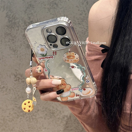 guanview ins夏天油画花朵饼干小熊链条适用iPhone17ProMax苹果16手机壳13全包硅胶12补妆镜面14卡通15防摔套